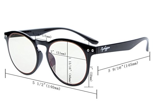 -. Feature : PRODUCTS DIMENSION-Frame material: Plastic,Lens width: 2" (51mm),Frame width: 5 1/2"(140mm),Lens height: 1 13/16" (46mm),Frame height: 2" (50mm),Bridge (DBL): 9/16"(15mm),Temple length: 5 9/16"(145mm),Spring hinge: NO,Lenses: Aspheric,Head size: Medium to wider.Rx-able frame / EYEKEPPER VINTAGE ROUND COMPUTER EYEGLASSES- Obliterate Blue Light with our patented computer glasses that will keep your eyes safe from all harmful blue light, designed for anyone using an electronic device such as computers, T.V.'s or phones.This meets the requirements of the U.S. FDA, and exceeds European Union requirements / EYEKEPPER COMPUTER GLASSES-included a microfiber pouch,Amber lenses,UV Protection. Superior Blue Light Blocking Computer Glasses that will reduce eye strain when working on a computer, tablet, phone or television.Excellent for Relieving Visual Discomfort and fatigue associated with using a computer for long periods of time / QUALITY FRAME -FDA Registered Gamer Glasses and Computer Eyewear,Accord with ANSI Z80.3-2010,Accord with BS EN ISO 12312-1:2013 and EN14139:2010,Accord with AS/NZS 1067:2009,Quality TR-90 frame,No Longer spend nights lying awake after using a Computer for long periods of time / LIFETIME BREAKAGE WARRANTY&30 DAY MONEY BACK GUARANTEE: In case any broken problem happens, contact the seller of Eyekepper without hesitation to solve the problem until satisfaction. Eyekepper provides lifetime after sale service for all Eyekepper computer readers glasses. Customers can return and get refunded for any reason. You have no risk to try
