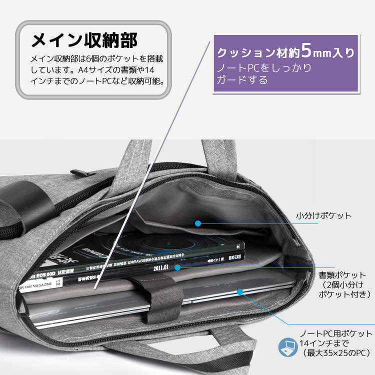 肩掛けから手持ちのスタイルに切り替えしやすいビジネスバッグです。