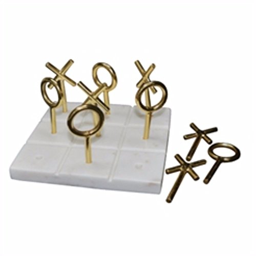 Benzara Charismatic Metal and Marble Tic Tac Toe Game, White and Gold Indoor