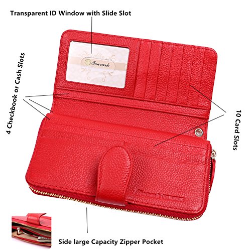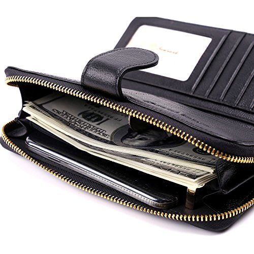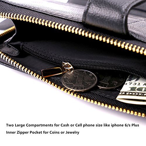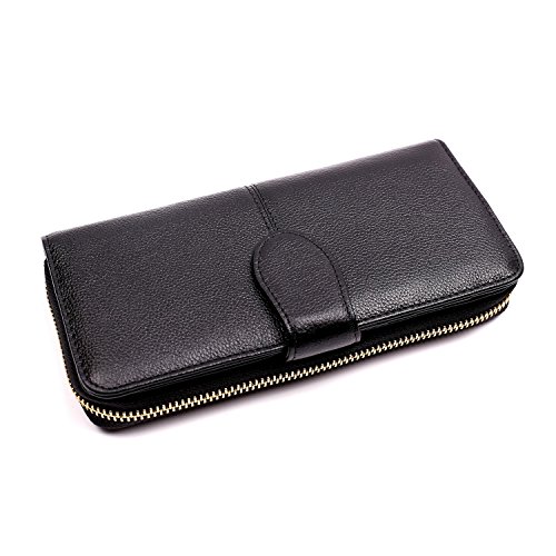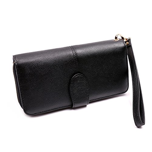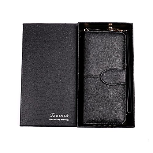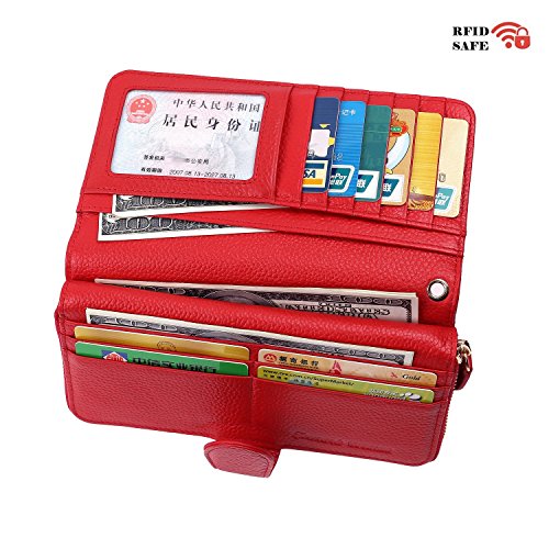 -. Feature : ✔ SAFETY & PRIVACY- Keep your sensitive information safe, protect you from illegal data breeches, our RFID wallets are equipped with advanced unique wireless blocking material , which blocks RFID signals and protects the valuable private information stored on RFID chips from unauthorized scans. Tested & Approved by Independent Test Lab,Tested from 10MHz to 3000MHz, including 13.56 MHz in which the credit cards operate. / ✔FASHION -Handsome, well-constructed, 100% top quality genuine leather. / ✔COVERAGE-Block RFID signal from 10M to 30G, including the most highly sensitive data stored at 13.56M HZ RFID, for example, credit card, debit card, driver licenses, medical ID, membership card and access control card. / ✔PRATICAL-Woman's clutch with zipper pocket is equipped with 10 card slots, 2 currency pockets, 2 checkbook slots,the zipper pocket with two separate areas plus one internal zipper pocket for coins and jewelry, one ID window, transparent ID window with central cut out over, easy to access the ID card, all these areas are under RFID protection, you can store banknotes, keys and other daily staffs in the zipper pocket, removable wrist strap. / ✔ QUALITY GUARANTEE-Top quality genuine leather, classy and supple, great workmanship, good stitching for superior durability, for any reason you're not 100% SATISFIED, full refund or a free replacement, whichever you prefer.