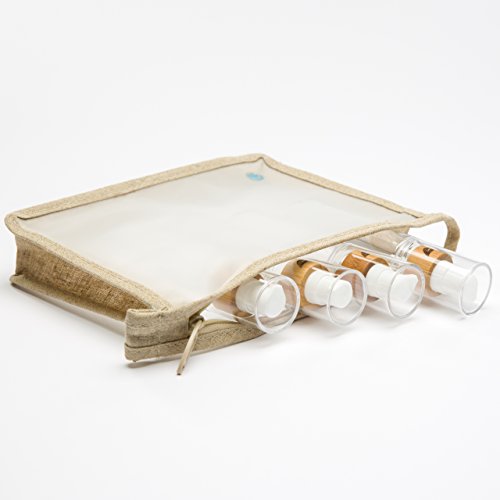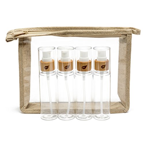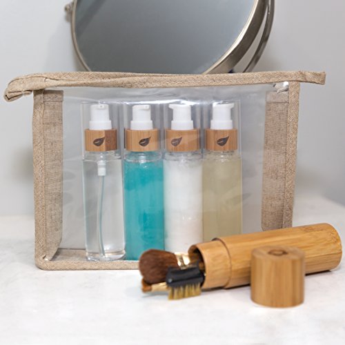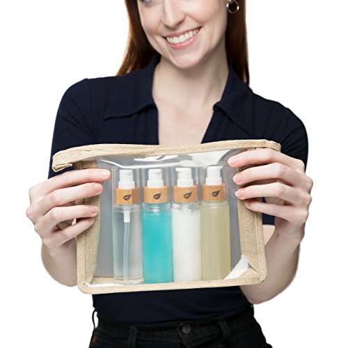 Travel Toiletry Kit Bamboo Bottles in a TSA & Airplane Friendly Quart Size Bag Perfect for Women or Men - Reuse for Makeup or Shampoo.