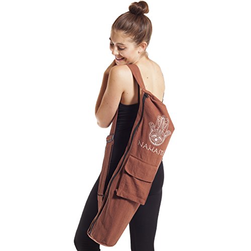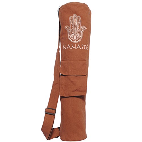 -. Brand : Lakhays -. Department : womens -. Feature : Construction: 100% Cotton Canvas / Dimension: 27 inches Long X 9.5 inches Wide / Adjustable Handle: Up 48 inches / Includes pocket with Velcro for closure / Made in Nepal -. ProductGroup : Apparel -. ProductTypeName : LAGE -. Title : Hamsa Namaste Yoga Pilates Mat Bag