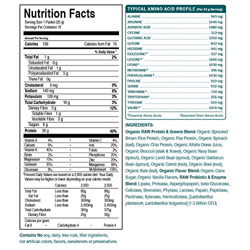 ReleaseDate : 2016-01-14 Studio : Garden of Life Publisher : Garden of Life Binding : Health and Beauty Product Description RAW Protein greens Lightly Sweet is a Certified USDA Organic and Non-GMO Project Verified blend of clean, organic plant protein providing 20 grams of delicious, smooth protein derived from organic pea, organic sprouted brown rice, organic chia, organic navy bean, organic lentil bean and organic garbanzo bean. It’s uniquely blended with six nutrient-rich, energizing, organic greens including organic alfalfa grass juice, organic spinach, organic kale, organic broccoli, organic carrot and organic beets. Flavored with delicious organic flavors, it is sweetened with 6 grams of organic cane sugar. 0