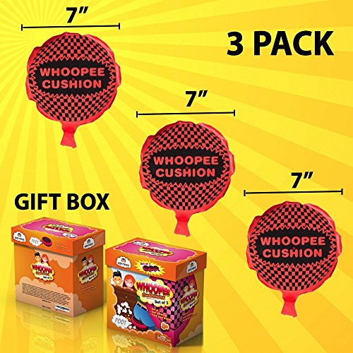 (Kipi Toys)/Activities Amusements/Gags Practical Jokes/DIRECT FROM USA/Whoopee Cushion Self Inflated 7" Set of 3 Gift Box Fart Prank Gag Novelty Trick Joke Toy for Ki...