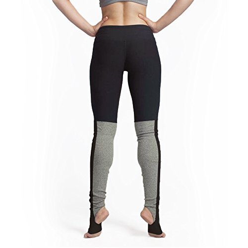 -. Feature : Heel cut-out Stirrups on cuffs keep pants in place, offer a svelte look. / Black and grey color block ribbed splice design. / Not see-through, moisture-wicking, breathable and stretchy fabric provides complete coverage. / Feel slippery,slim skinny,stretchy yoga leggings keep your feet warm in winter. / Soft,Quick-dry,carry buttock would show your hourglass figure