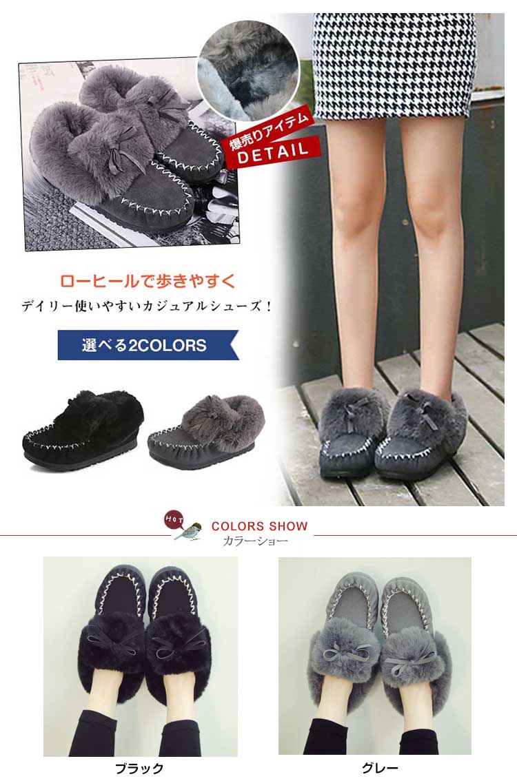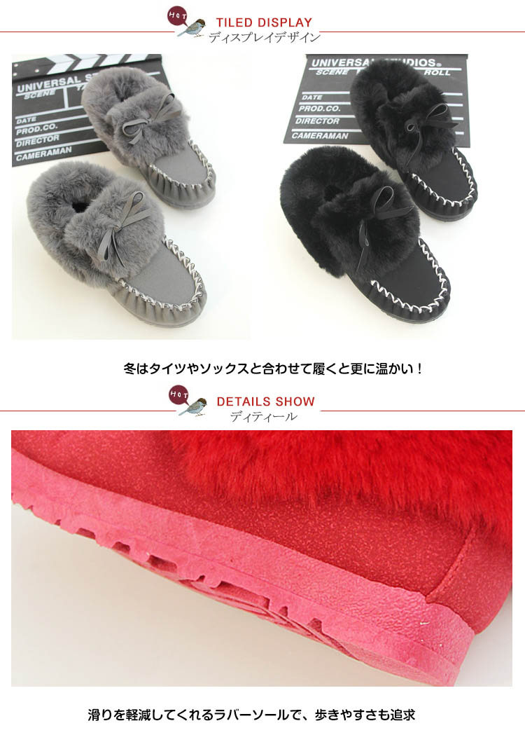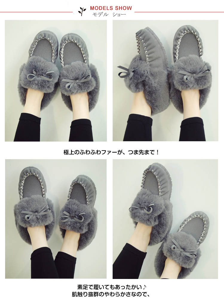 | ローヒールで歩きやすくデイリー使いやすいカジュアルシューズ!極上のふわふわファーが、つま先まで!素足で履いてもあったかい♪肌触り抜群のやわらかさなので、秋口に素足で履いても気持ちいぃ?冬はタイツやソックスと合わせて履くと更に温かい! | |