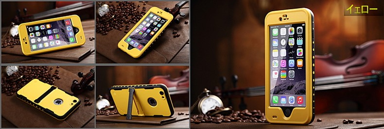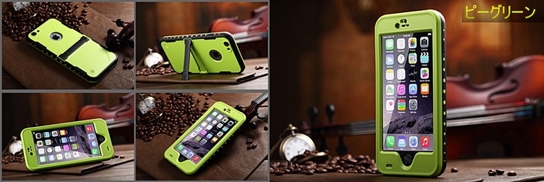 対応機種:iPhone6 iPhone6s防水性 :水圧2メートル耐衝撃性:2メートル付属品 :本体、クリーニングクロス、防水用ヘッドフォンジャック(ねじ込み式)カラー(全10色) (1) イエロー(2) ピーグリーン(3) ピーコックブルー(4) ブルー(5) パープル(6) ホットピンク(7) レッド(8) オレンジ(9) ブラック(10) ホワイト