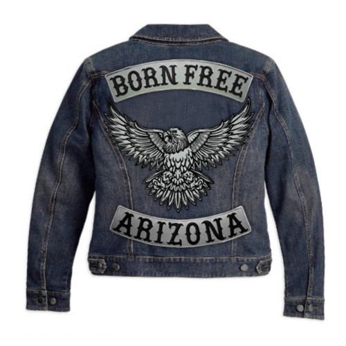 -. Title : ARIZONA REFLECTIVE EMBROIDERED IRON-ON DECORATIVE PATCH BIKER JACKET RIDER VEST LOW ROCKER 12" VEGASBEE®