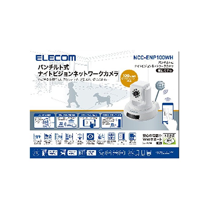 원본상품명: ELECOM ネットワクカメラ パンチルト+ナイトビジョン+LEDドングル機能搭載 NCC-ENP100WHシリズ