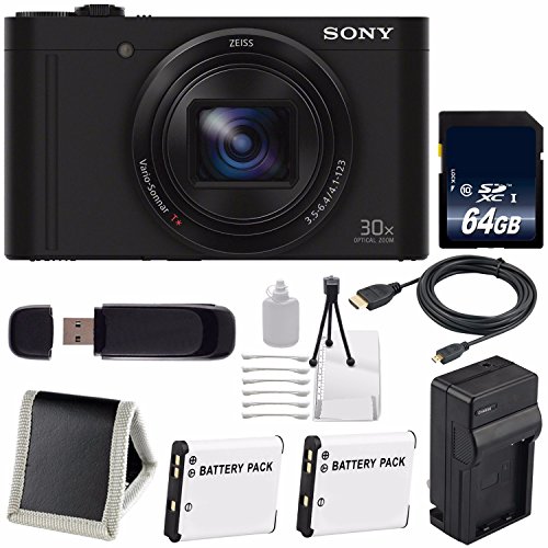 Sony Cyber-shot DSC-WX500 Digital Camera (Black) + NP-BX1 Replacement Lithium Ion Battery + External Rapid Charger + 64GB microSDXC Card + Memory Card Wallet + SD Card USB Reader + HDMI Cable Bundle