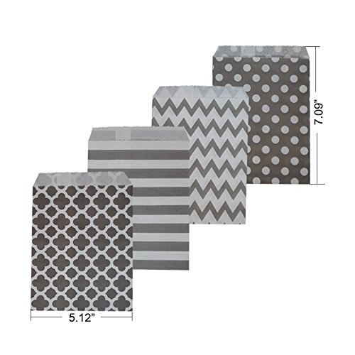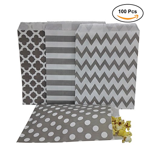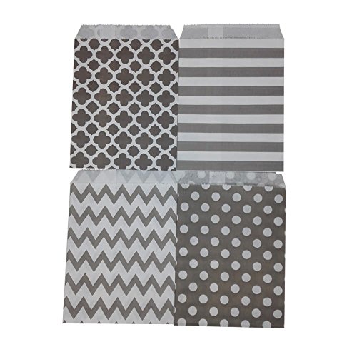 Silver Biodegradable Paper Candy Cookie Bags, NUIBY Food Safe Favor Bags, Buffet Treat Bags for All Parties Loot Bags - 100 Counts, Assorted 4 Designs (Silver)