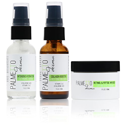 -. Binding : Misc. -. Brand : Palmetto Derma -. Feature : Ingredients include the most luxury quality: Peptide Complex, Retinol, Glycolic Acid, Vitamin C, CoQ10 & Rose Hip Oil / Firming Antioxidant Removing Wrinkles & Fine Lines / Paraben & Sulfate Free / Formulation combines the advanced peptides of Matrixyl 3000 & Tripeptide-5 which repair & soothe fragile skin around the eye / Made in USA -. PackageQuantity : 1 -. ProductGroup : Beauty -. ProductTypeName : BEAUTY -. Title : Retinol & Peptide Infused Lifting Eye Cream: A Complete Antioxidant Filled Lifting Eye Cream. Made Specificially for Anti-Aging through the creation of collagen eliminating wrinkles & fine lines with each use. Matrixyl 3000 & Tripeptide-5 along with many other natural minerals & vitamins repair & lift delicate skin surrounding eyes & on face for a youthful rejuvination!