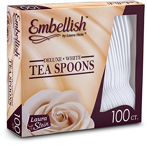 Embellish Cutlery Deluxe Heavy Weight White Plastic Tea Spoons 100 Tea Spoons In A Box