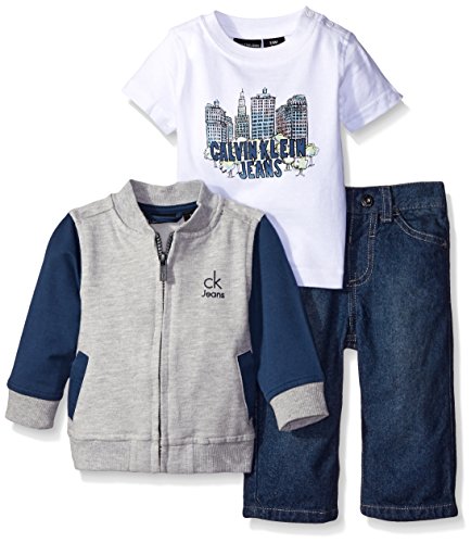 -. Title : Baby Boys' Gray French Terry Jacket with Short Sleeve Tee and Jeans