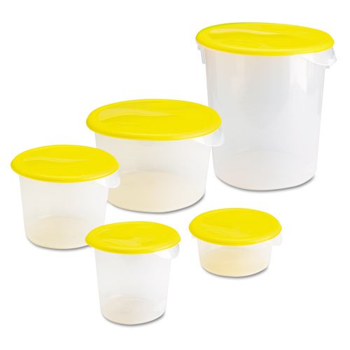-. Feature : Round food storage containers are economical, durable, and easy to use. / Stackable in use; nestable for compact storage. Reinforced rim adds strength and durability even with full, heavy loads. / User-friendly, easy-grip handles with dishwasher drain hole. Dishwasher-safe at temperatures -20°F/-34°C to 212°F/100°C. / Made of BPA-free, FDA compliant materials; certified to NSF Standard #2. / Available in white polyethylene or semi-clear polypropylene for greater visibility. Made in the USA. / Stackable in use; Nest for compact storage / Reinforced rim for added strength / User-friendly, easy-grip handles with dishwasher drain hole / Temperature range: -20-Dergee F/-34-Dergee C to 212-Dergee F/100-Dergee C. Dishwasher safe. / Certified to NSF Std; and Made of FDA compliant materials