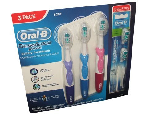 -. Title : Oral-B CrossAction Battery-Powered Toothbrush, Pack of 3, Plus Two Extra Replacement Brush Heads (Colors may vary) - Soft