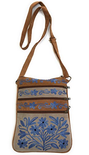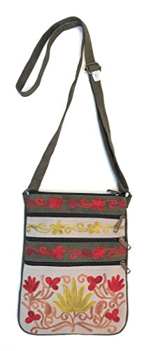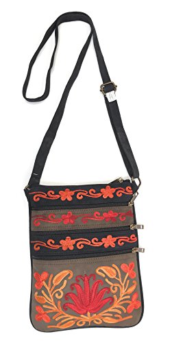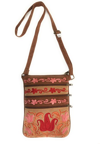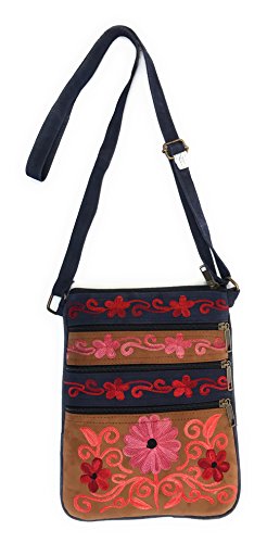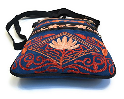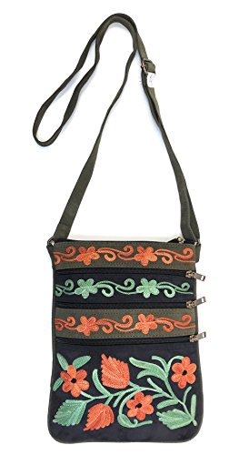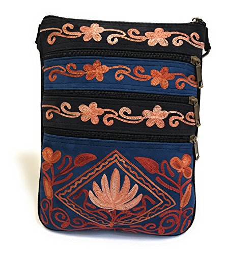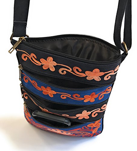 All our handbags are meticulously handcrafted and intricately embroidered with brightly colored silk thread. Each bag is a unique piece of art, unlike mass produced, machine made purses. Very roomy for its small size! It has multiple front & back zippered pockets for practical, easy accessibility. A total of five pockets can fit a small wallet, sunglasses, cell phone (including large ones like iPhone 7S Plus), iPad mini/KindleReader, makeup essentials, a small digital camera, passport, paperback novel, keys, cards, and a small bottle of water.Feature