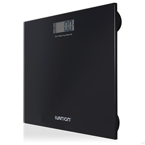 -. Brand : Ivation -. Feature : Displays Weight in "kg" and "lb" Units / Hands-Free Activation: Step to Power On / Super Accurate & Quick to Calculate Weight / Operates in Environments up to 90% RH / 11.8" x 11.8" x 0.9" - 1 Year Warranty -. IsAdultProduct : 0 -. Label : Ivation -. Manufacturer : Ivation -. ProductGroup : Health and Beauty -. ProductTypeName : PERSONAL_CARE_APPLIANCE -. Publisher : Ivation -. Studio : Ivation -. Title : Digital Bathroom/ Body Weight Scale "Step-On" Technology w/ Extra Large LCD Display High Accuracy, Ultra-Thin Tempered Glass, 330-Pound Load Capacity