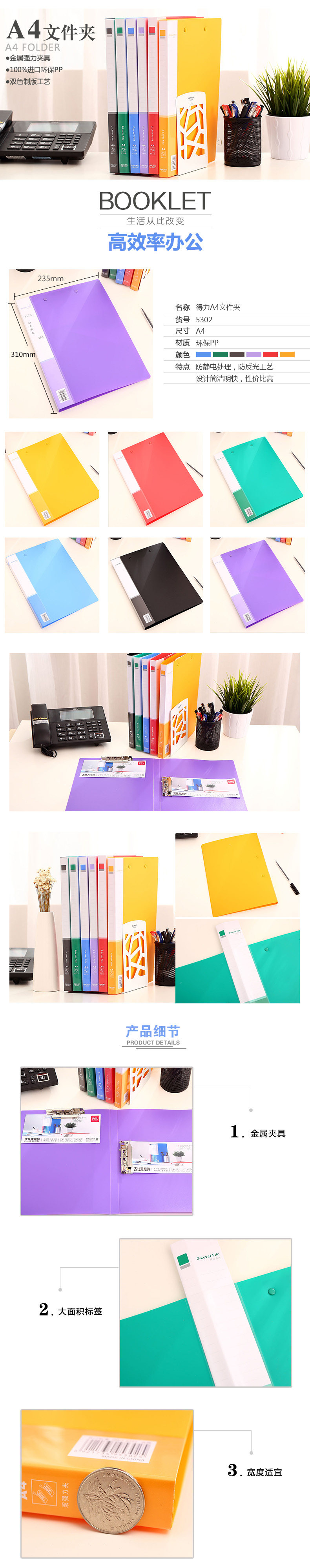 办公文具5302商务文件夹A4塑料双夹双强力夹资料夹文件整理夹