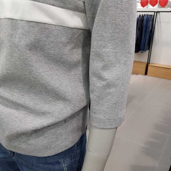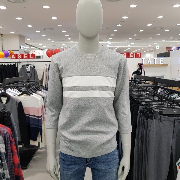 배색 포인트가있는 루즈핏 7부 면티셔츠에요.원단이 탄탄해서 늘어남도 덜하고 7부소매라 단품으로도 간편하게 입기 좋은 아이템이에요