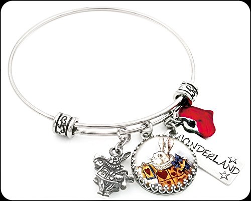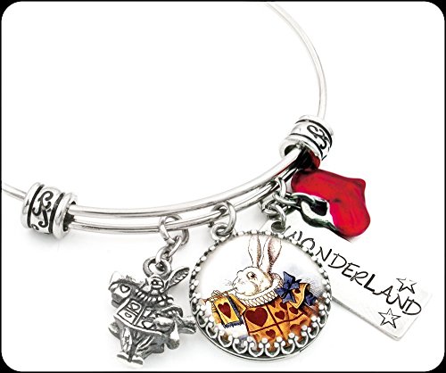 -. Title : Alice in Wonderland Charm Bracelet, White Rabbit Silver Bangle