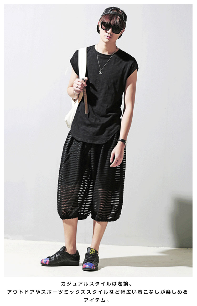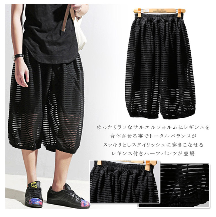 | ゆったりラフなサルエルフォルムにレギンスを合体させる事でトータルバランスがスッキリとしスタイリッシュに穿きこなせるレギンス付きハーフパンツが登場。カジュアルスタイルは勿論、アウトドアやスポーツミックススタイルなど幅広い着こなしが楽しめるアイテム。ウエスト部分は、ゴムデザインなのでストレスなくリラックス感も満載♪ | |