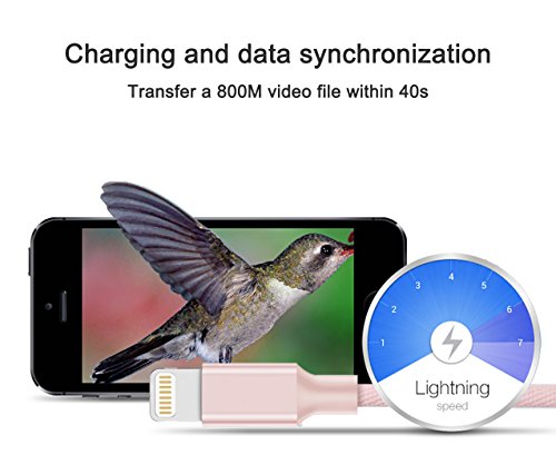 【Outstanding Charging & Sync Performance 】Fast charging and data transfer via lightning 8-pin to USB sync and high purity oxygen free copper core. Ensure the high speed and stability of charging and data sync. 40% increase of the transmission speed.The transfer speed arrives 20M every seconds.Save your invaluable time to the most extent.