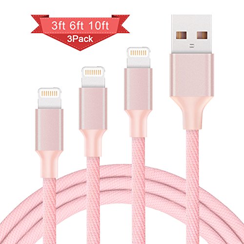 iPhone Charger Cable 3Pack (3/6/10ft) Elktry Durable Denim Braided Sync Wire Fast Lightning Charging Data Transfer Cord for iPhone7 7plus 6 6s 6plus 6splus SE 5s 5c 5 iPad Pro Air iPod (Adorable Pink)