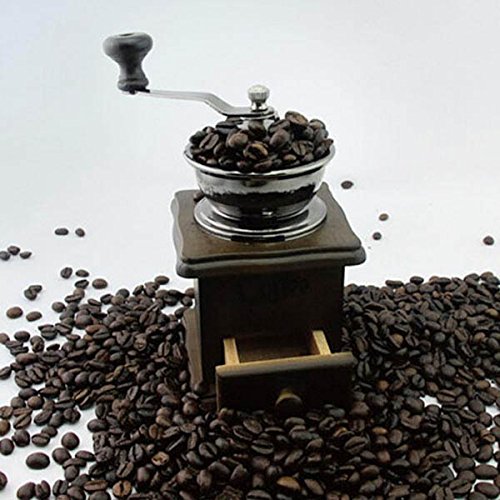 -. Title : Retro Wooden Coffee Bean Hand Grinder Family Mini Flour Mill