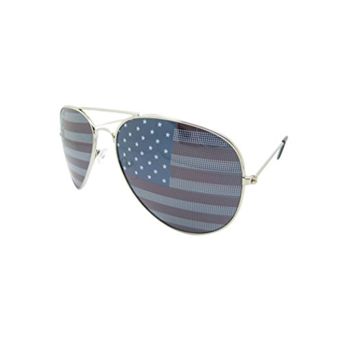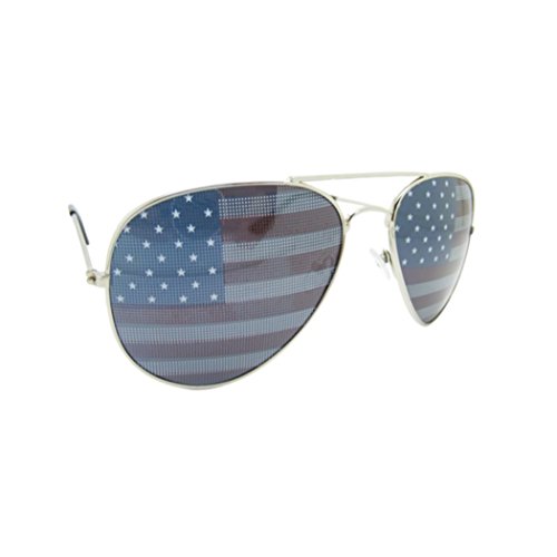 TronStore Premium USA American Flag Patriotic Classic Teardrop Aviator Air Force Pilot Metal Frame Sunglasses (TS7)