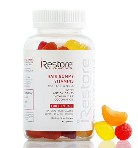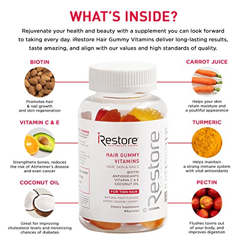 -. Title : iRestore Hair Gummy Vitamins with Biotin, Vitamins C & E, Coconut Oil, Turmeric - Vegan, Gluten Free, Natural Hair Growth, Skin & Nails Supplements - For Men & Women