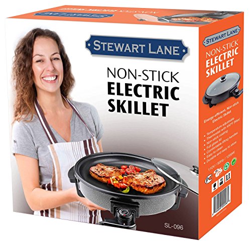 -. Title : Stewart Lane Energy Efficient 13.5 Inch, 3.7 Qt Non-Stick Electric Skillet With Glass Cover Lid, 400 Deg Blk Stylish Round Cook Fry Stew Roast Bake Slow Cook Buffet Cater Serve Breakfast Lunch Dinner