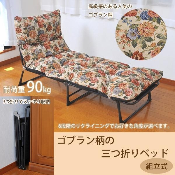 | 仕様 | 組立式 耐荷重:90kg マット:ゴブラン柄 リクライニング:6段階 洗濯不可 |