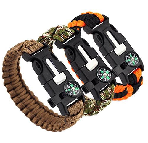 YICHUMY 3 Packs! 5 In 1 Multifunctional Outdoor Paracord Survival Kit Paracord Survival Bracelet Compass fire Starter Scraper Whistle for Hiking Camping bracelet Emergency More