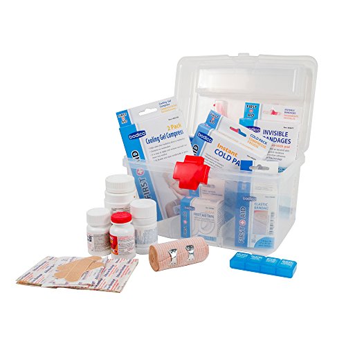 Studio : CTG Brands Publisher : CTG Brands Binding : Kitchen Product Description It's important to always be prepared. The Bodico storage box is the ideal container to store all of your first-aid necessities. It is composed of durable plastic and features a hinging lid with a red cross on the closure. You can store all sorts of equipment within, including bandages, Gauze, tape, antiseptic cleansing wipes, metal scissors, and safety pins, to name a few. This storage box allows you to keep all of your emergency items in one spot. 0