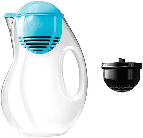 The bobble jug is the next generation in filter water jugs from the people who made Bobble;The Bobble Jug is unexpectedly slim but still manages to hold 2 litres of water;The 2-litre jug is free of BPA, phthalates and PVC; Clear water jug with blue lid/filter housing. Designed by Karim Rashid