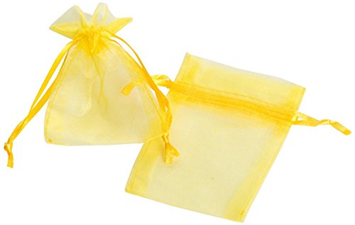 3x4 Inch Sheer Organza Drawstring Pouches Gift Bags Yellow Color 100 Pcs
