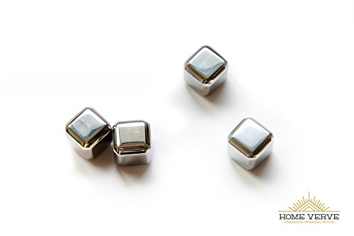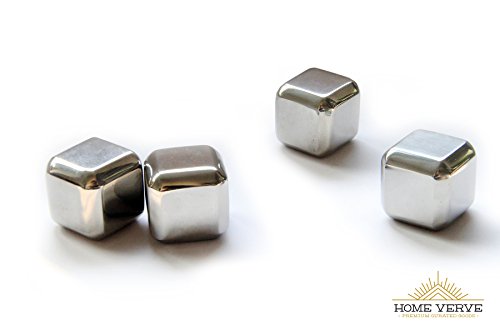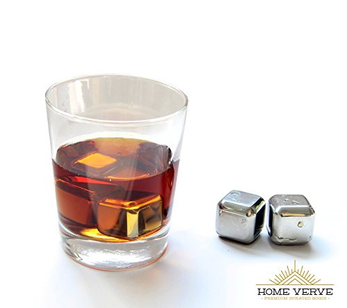 -. Feature : DOESN'T DILUTE YOUR LIQUOR- These stainless steel chilling cubes will let you enjoy your drink without the waterdown taste that ice cubes deliver. Enjoy and savor the taste of your Scotch, Whiskey, or Bourbon. These will compliment your experience while relaxing by yourself or throwing a party. / UPGRADE YOUR DRINK TO FIRST CLASS - Turn yourself into the ultimate bartender by serving your friends and family their cocktails and drinks with chilling cubes in their glasses. Impress them with unique barware and add these to any bartending recipes. These food grade gel filled steel cubes are a perfect non-diluting alternative to ice cubes and don't leave residue like whiskey stones. / FASTER & EASIER TO FREEZE: These Home Verve stainless steel cubes contain a food grade chilling gel in the center that freezes each cube, from the inside out. This allows for minimum freezing time (1-2 hrs) and much longer cooling time, over any other type on the market. / PREMIUM QUALITY: Unmatched quality of our chillers are fully FDA approved and eco friendly, the Home Verve chiller cubes are durable and re-usable time and time again. Enjoy a cool beverage anytime anywhere. Easy to clean, just rinse it under your faucet after using and it's ready for another chill. Keeps drinks cooler longer than whiskey stones or soapstone ice cubes. / 100% GUARANTEE: A variety of cold drinks like whiskey, scotch, wine, vodka and so on can avail the benefit of these chillers. They are suitable for other beverages like juice, ice-tea, soda etc. too. We are so confident about our product that we offer you a lifetime guarantee! Don't like? Send them back for a full refund, no questions asked.