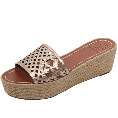 (Tory Burch)/Women's/Sandals/DIRECT FROM USA/Tory Burch Thatched Wedge Perforated Flip Flop Sandal TB Logo Slide