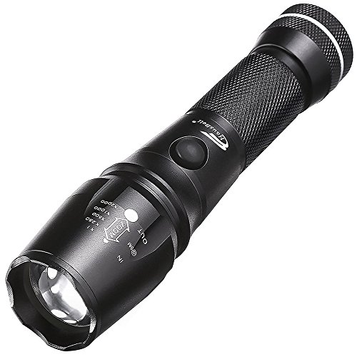 5 Adjustable Mode:high/medium/low/strobe/flashing SOS; Different power options 1x rechargeable 18650 Lithium battery (not included) or 3 x AAA batteries (not included);