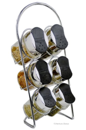 -. Feature : Spice Rack & 6 Jars / Chrome Rack with Glass jars / Tabletop / Countertop / Gift Boxed / Each Jar: 4" x 2" x 1.5" (3.4 oz / 100 ml Capacity), Rack: 11" x 4.75" x 5"