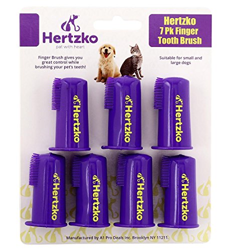 Dogs and Cat Finger Tooth Brush by Hertzko – Pk Includes 7 Finger Brushes - Gives Great Control to Reach into the Back of your Dogs Mouth - Decreases Teeth and Gum Problems - Advanced Oral Care
