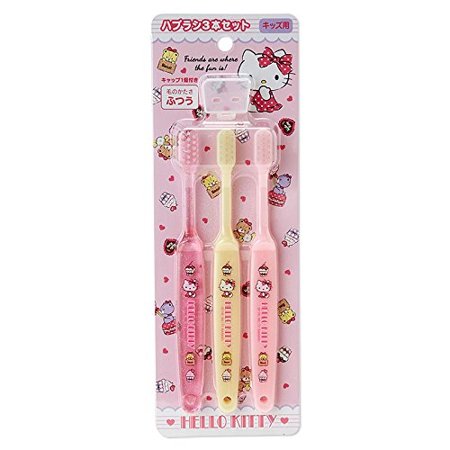春が待ち遠しくなる入園入学準備。幼稚園や保育園、自宅用やストック用にうれしい3本セット。携帯に便利なキャップ付き。本体サイズ:パッケージサイズ:約8×2×23cm、1本あたり:約1×0.7×15.5cm。主な材料・原料:AS樹脂、ナイロン。キッズ用歯ブラシ3本セット。毛のかたさ:ふつう。(C)1976,2017 SANRIO CO.,LTD.(P)