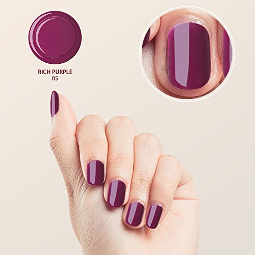 6 SHADES WITH BEST APPLICATION BRUSH - Always ensures smooth and even covering.1 Bottle of Clear Base & Top Coat with 5 Colored Nail polish:Black Cherry,Island Paradise,Pale Dogwood,Rich Purple,Black