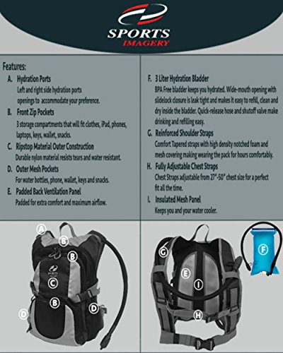 -. Title : Sports Imagery-Hydration Pack Premium Backpack Daypack with 3.0L(100oz) Water Bladder.3 Large Storage Compartment Rucksack For Hiking-Running-Cycling-Climbing-Skiing For Men,Women, Kids