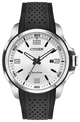 Take action and show your inner drive with the sporty styling of the CITIZEN AR, powered by light with Eco-Drive technology. Featured with a ladies' stainless steel case with black chroma finishing accents , black polyurethane strap and silver dial with date.