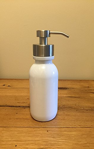 16oz Glass Soap Holder for Foaming Soap, Dispenser for Foaming Bath or Hand Soap by Industrial Rewind (White/Stainless)