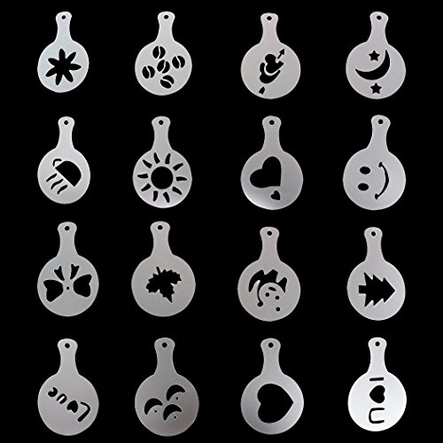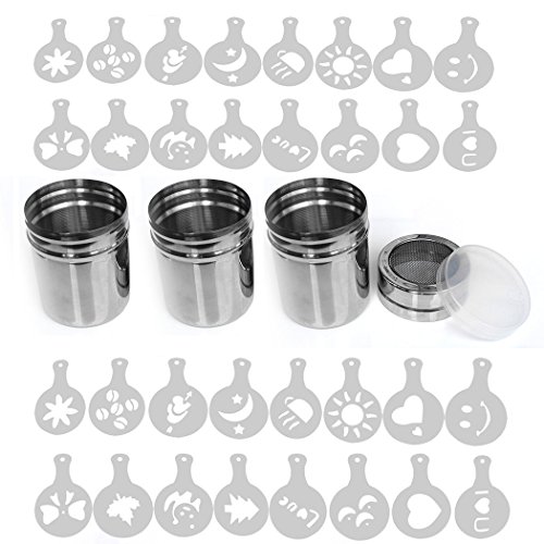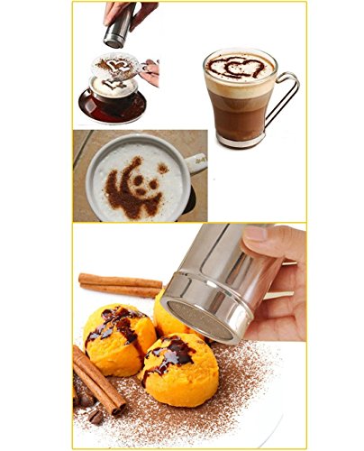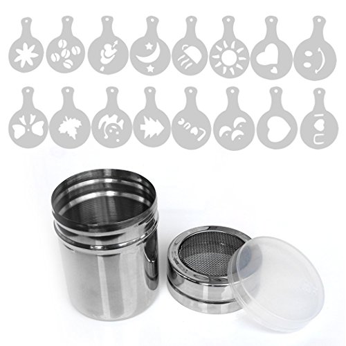 Studio : Aoyoho Publisher : Aoyoho Product Description USAGE: First will be equipped with cocoa powder, chocolate powder, cinnamon, green tea powder fine mesh sieve flour, shaking to sprinkle on the printing Stencils. Then take away the Shaker sieve, remove the printing Art stencils, so that the surface of coffee; cake; baking etc. will leave you a nice graph let your life funny and colorful Ideal For shaking icing sugar onto cakes, chocolate onto coffee, flour when baking, etc. If you like to do DIY dessert or drink, don't hesitate to buy them. they are will be your great helper Shaker size: approx.5.3*7.5cm/2.1"*2.93",Latte Art Stencils size: approx. 8.5*13cm / 3.35*5.15" Package Included: 1 x Duster 32 x Coffee Stencils(32 Pieces/16 Different style) 1 x Plastic Cover