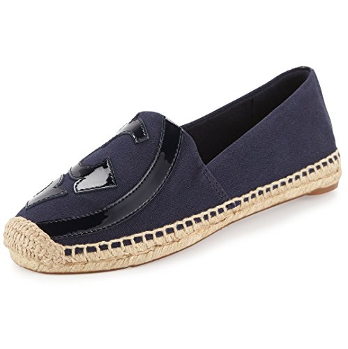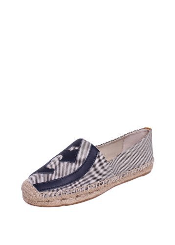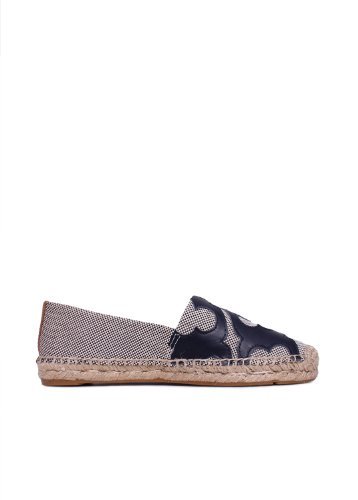 A graphic take on a warm-weather essential, the Lonnie Flat Espadrille features an abstract design of our signature logo done in leather. This comfortable tomboyish slip-on is made of textured canvas, with a natural jute-and-rubber sole. A great off-hours style, it can easily carry you from the beach to city streets, all season and beyond.Feature