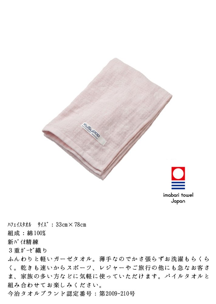 KUSUBASHI MON-ORI [Imabari Towel] KuSu POP paletone Triple Gauze Face Towel Pink (1-60070-31-P)